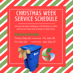 Thompson’s Sanitary Service operations including service routes, the main office, and transfer station are all closed Thursday, December 25, 2025 and Thursday, January 1, 2026. For these two holidays: if your normal service day is Thursday, it will happen on Friday AND if your normal service is Friday, your service will be Saturday. Downloading our […]